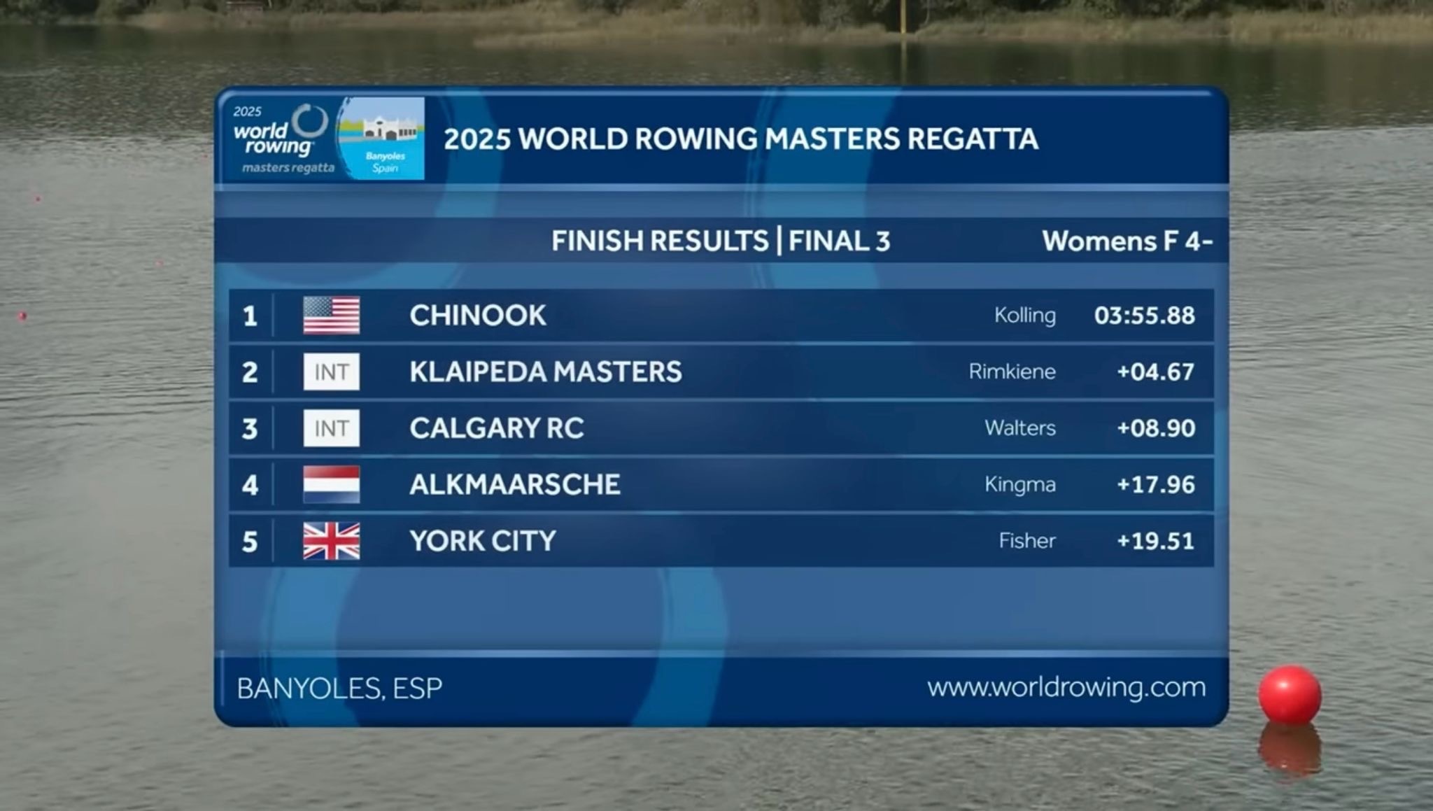 Now, the pair is keeping the momentum going as they set their sights on an international goal for 2026 in Bled, Slovenia, where the next World Rowing Masters Regatta will take place.